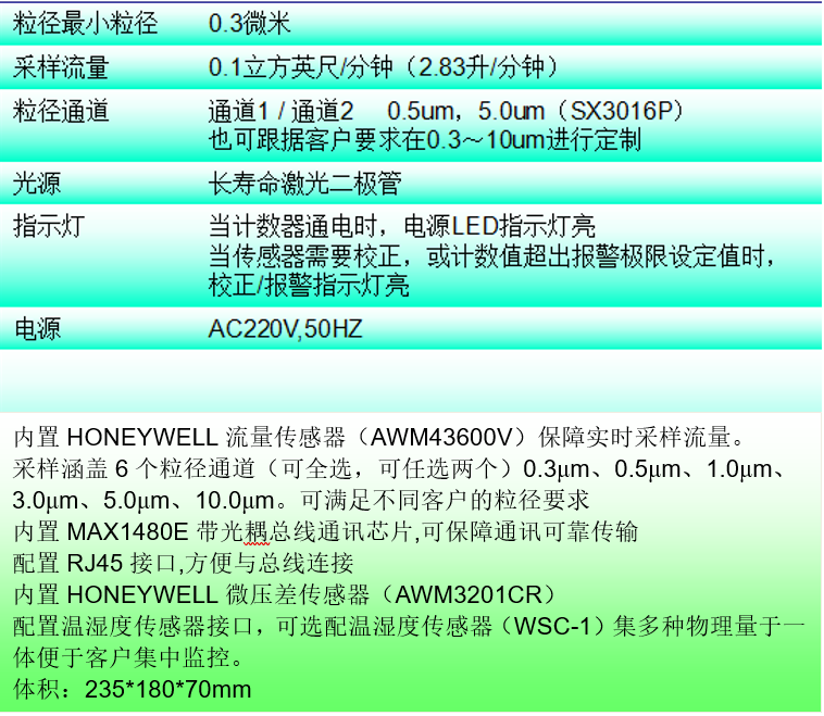 粒徑最小粒徑 0.3μm 采樣流量 0.1m³/分鐘(2.83升/分鐘)